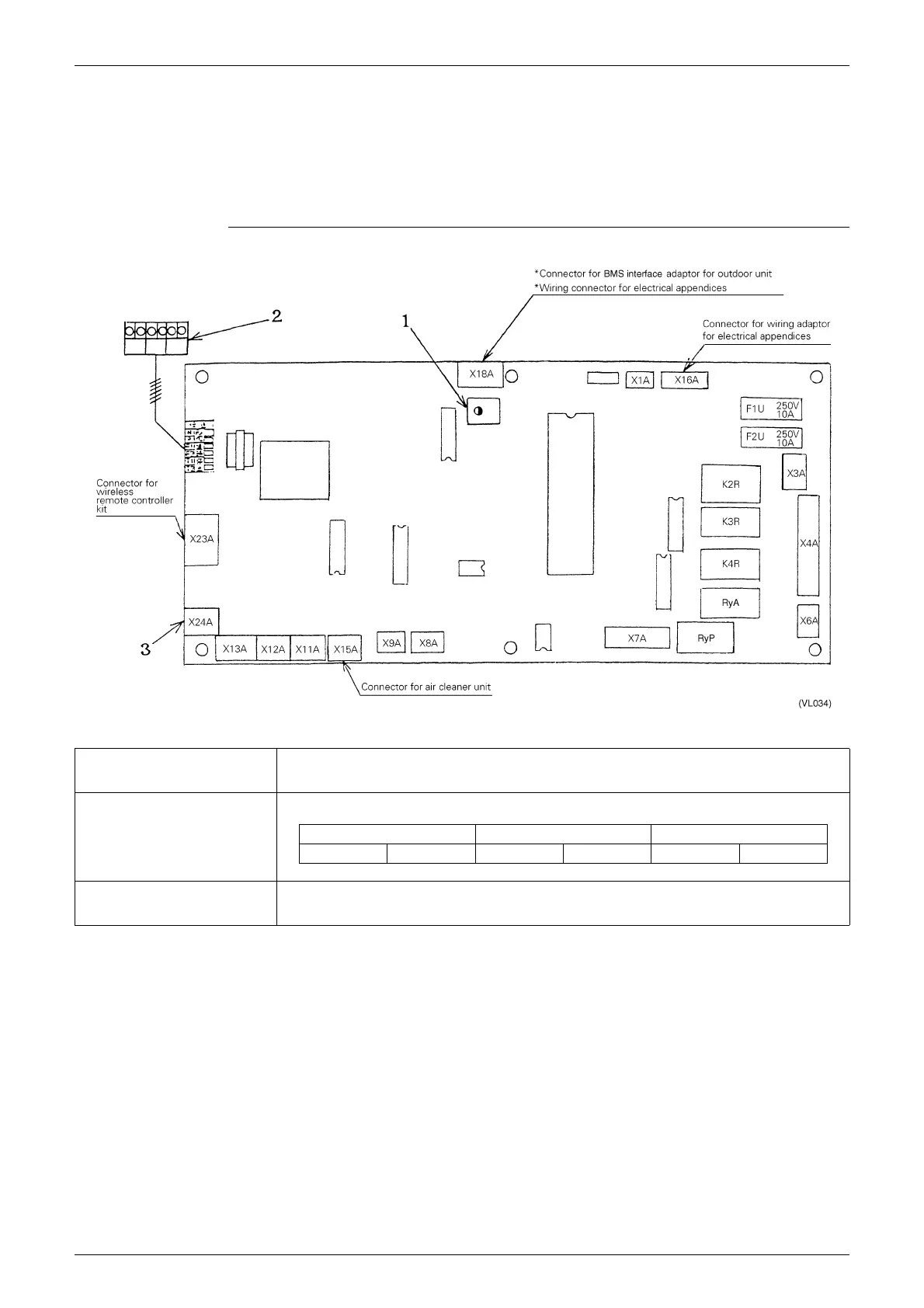 2 Transmission wiring terminal Terminal for remote controller wiring, indoor - outdoor unit transmission wiring (central wiring), and wiring