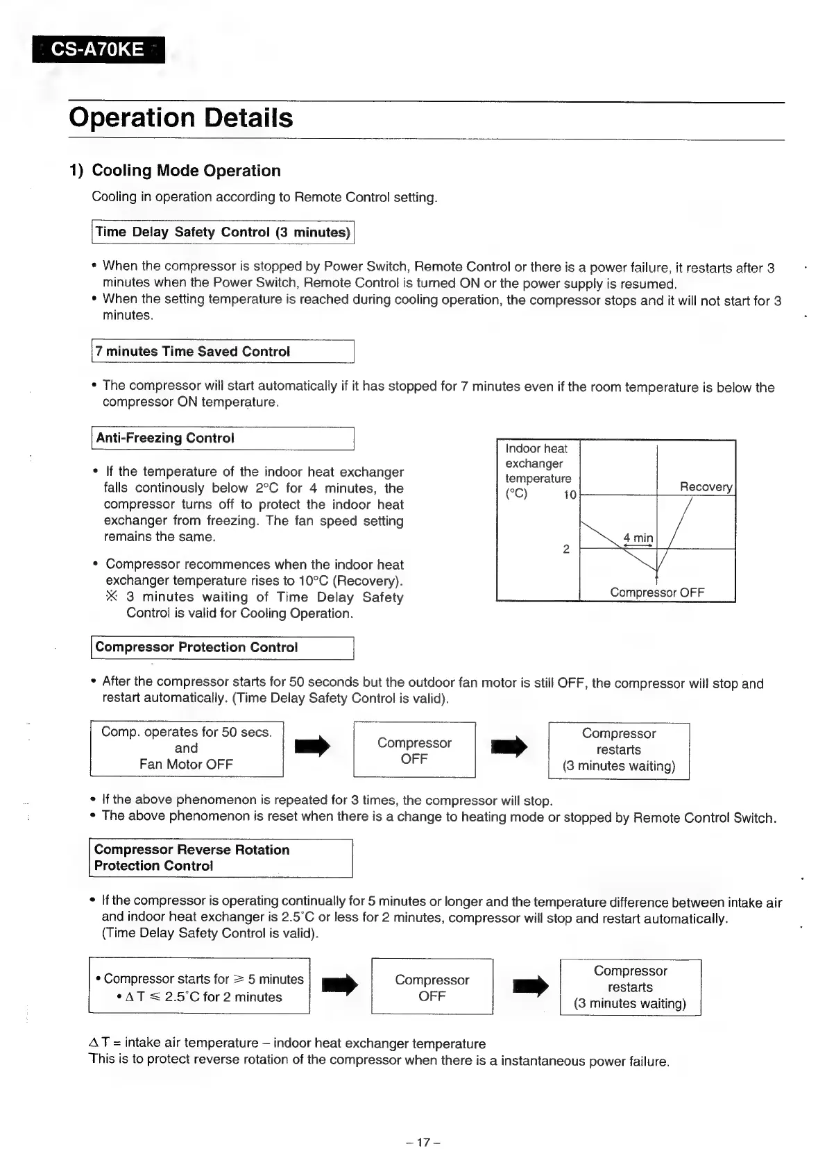 Panasonic CU-A120KE - Operation Details; Cooling, Dry, and Heating Modes