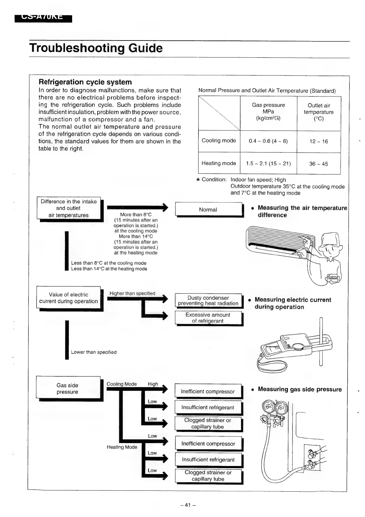 Panasonic CU-A120KE - Troubleshooting Guide; Refrigeration Cycle Diagnosis