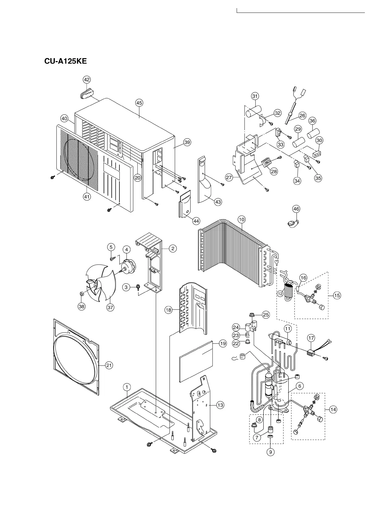 Panasonic CU-A125KE - 19 Exploded View: Outdoor Unit (CU-A125 KE); Outdoor Unit (CU-A125 KE) Parts Diagram