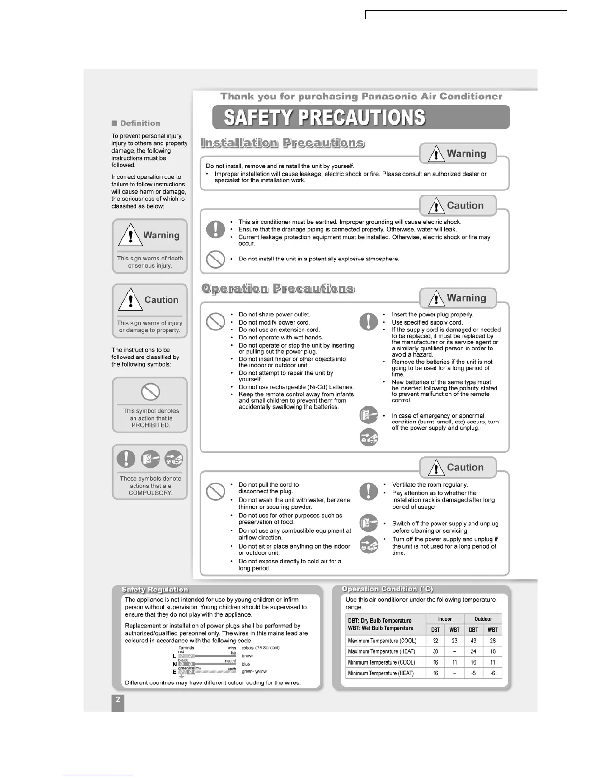 Panasonic CU-A12DKD - 9 Operating Instructions