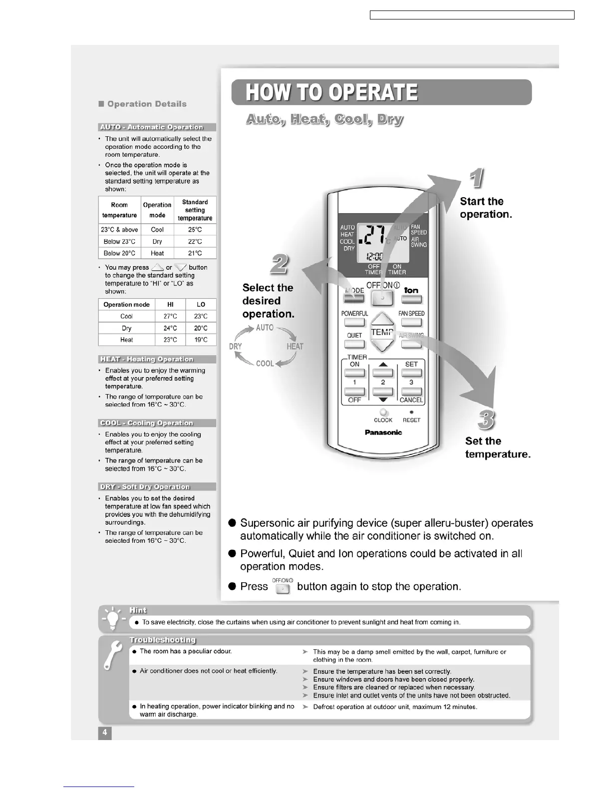 Panasonic CU-A12DKD - 10 How to Operate; Basic Operation Modes