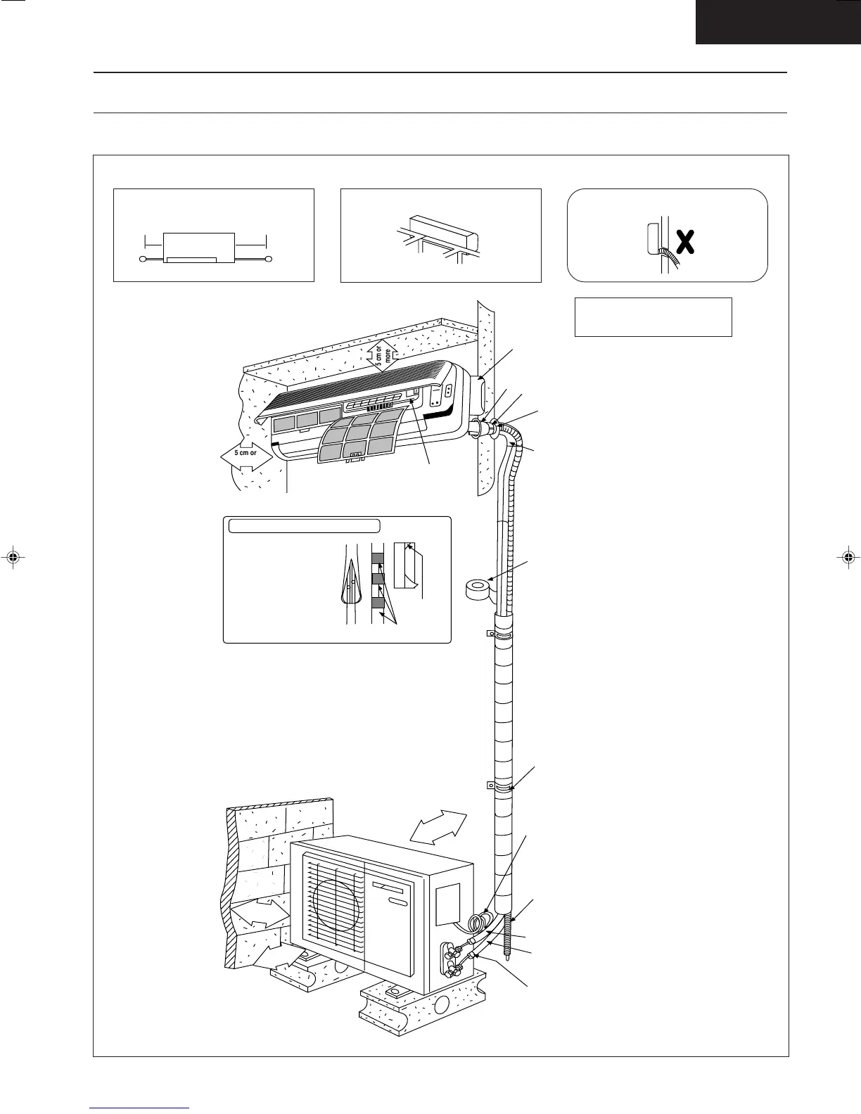 Length of power supply cord Piping direction Attention not to bend up drain hose