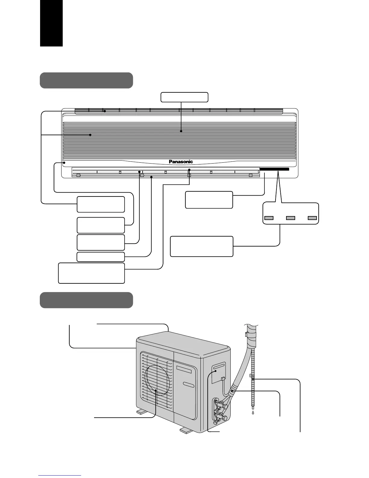 Panasonic CU-A28BKP5 - Identificação das Peças; Unidade Interna; Unidade Externa
