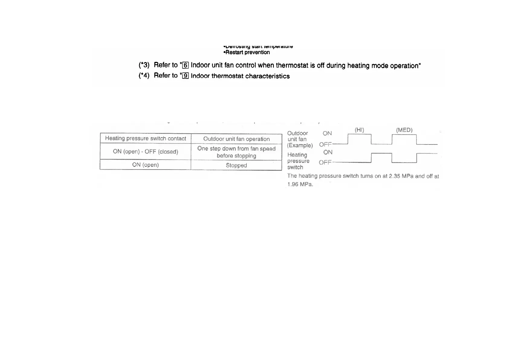 on), the outdoor unit fan is controlled by means of input (CN2) indicating / whether the contact of the heating pressure switch on the