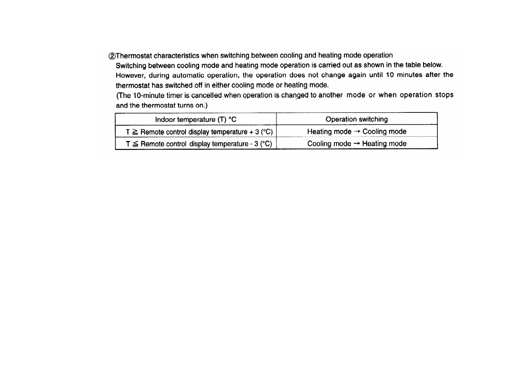 4.Thermostat characteristic during cooling mode and heating mode operation. / The thermostat on/off characteristic in both operation