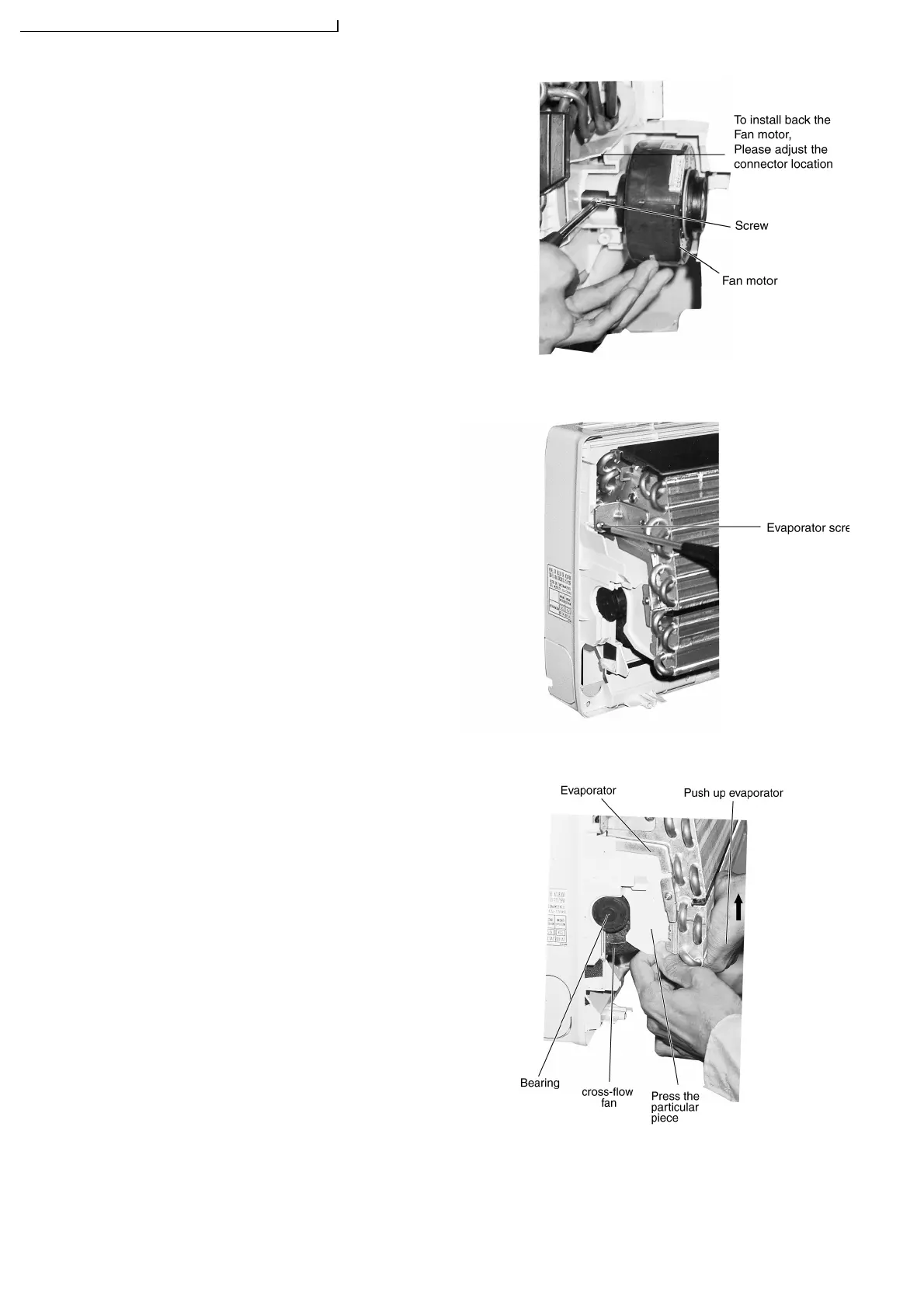 5. Push up the evaporator and take out the cross-flow Fan.