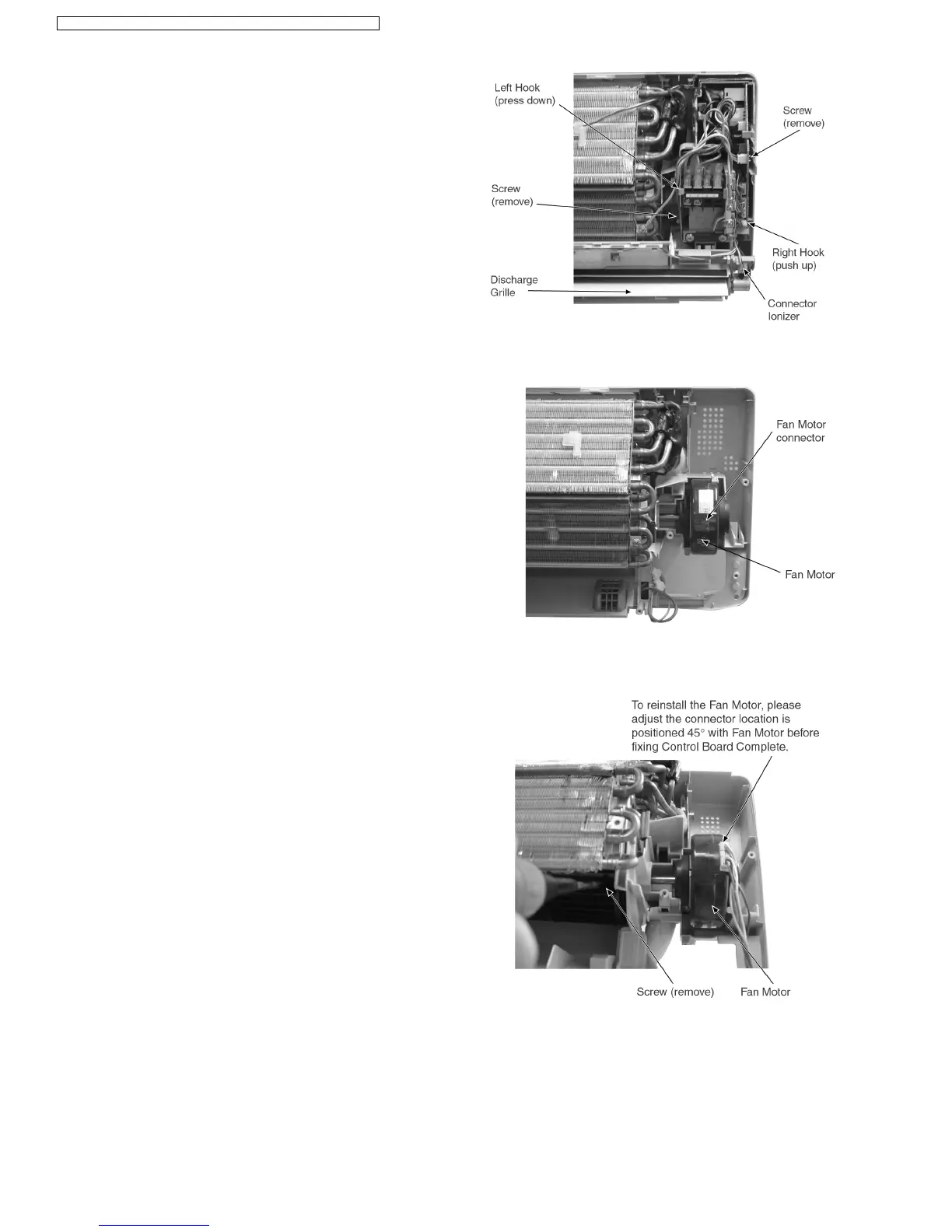 Release the Fan Motor leadwire by pressing the hook at