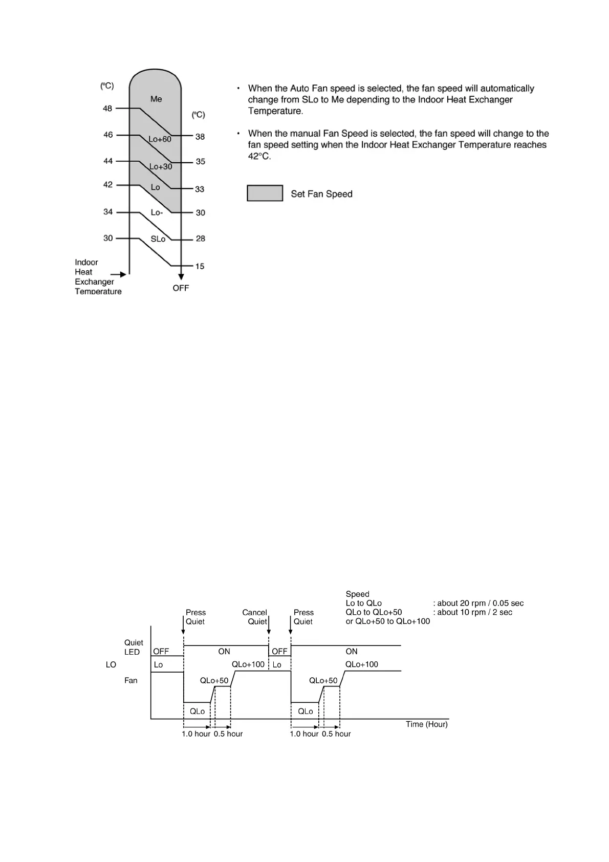 • Once the Quiet Mode is set at the remote control, the Quiet Mode LED illuminated. The sound level will reduce around 2 dB(A)