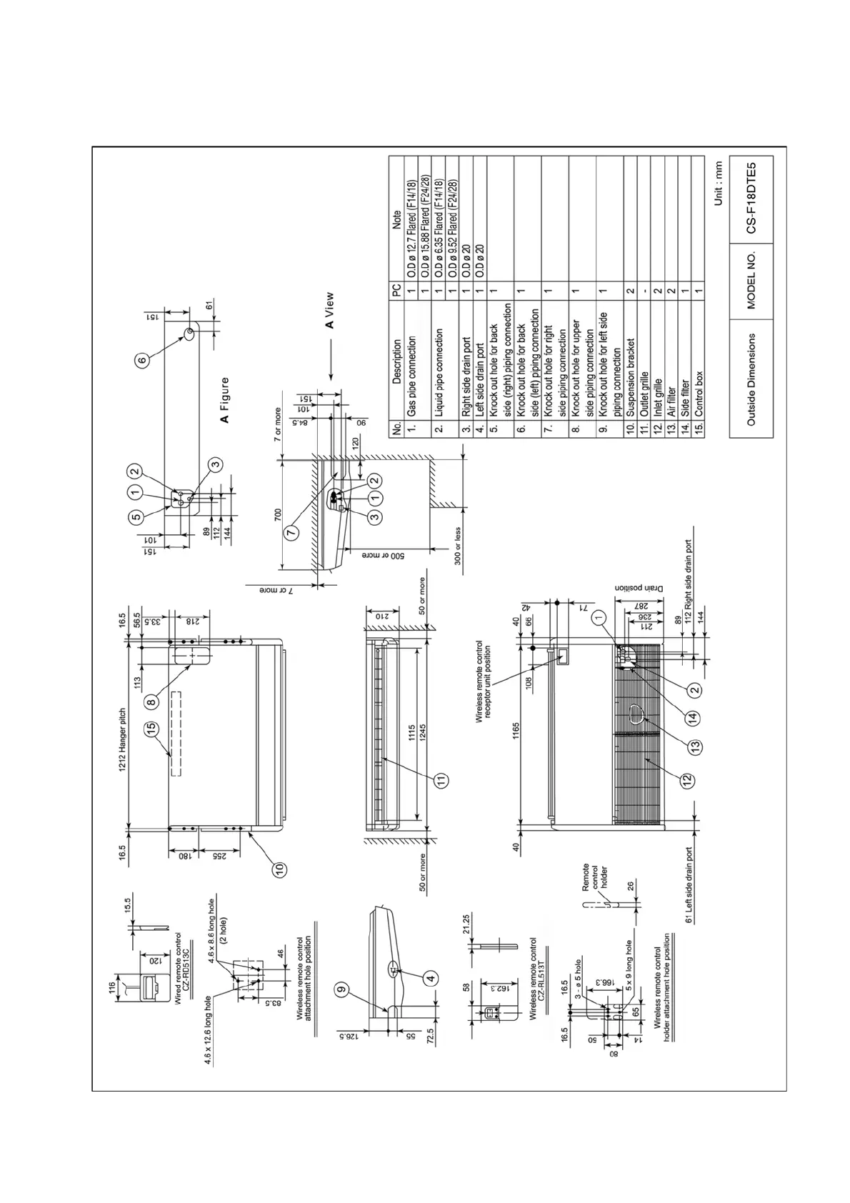 Panasonic CU-B14DBE5 - Dimensions; Cs-F18 Dte5