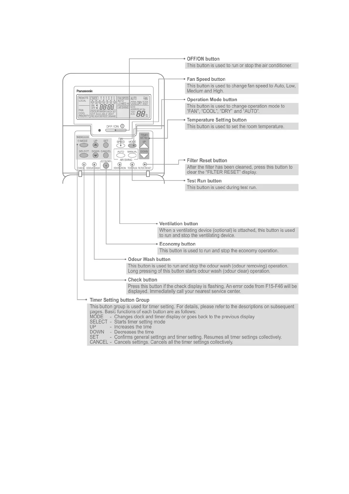 Panasonic CU-B14DBE5 - Remote Control - Panel