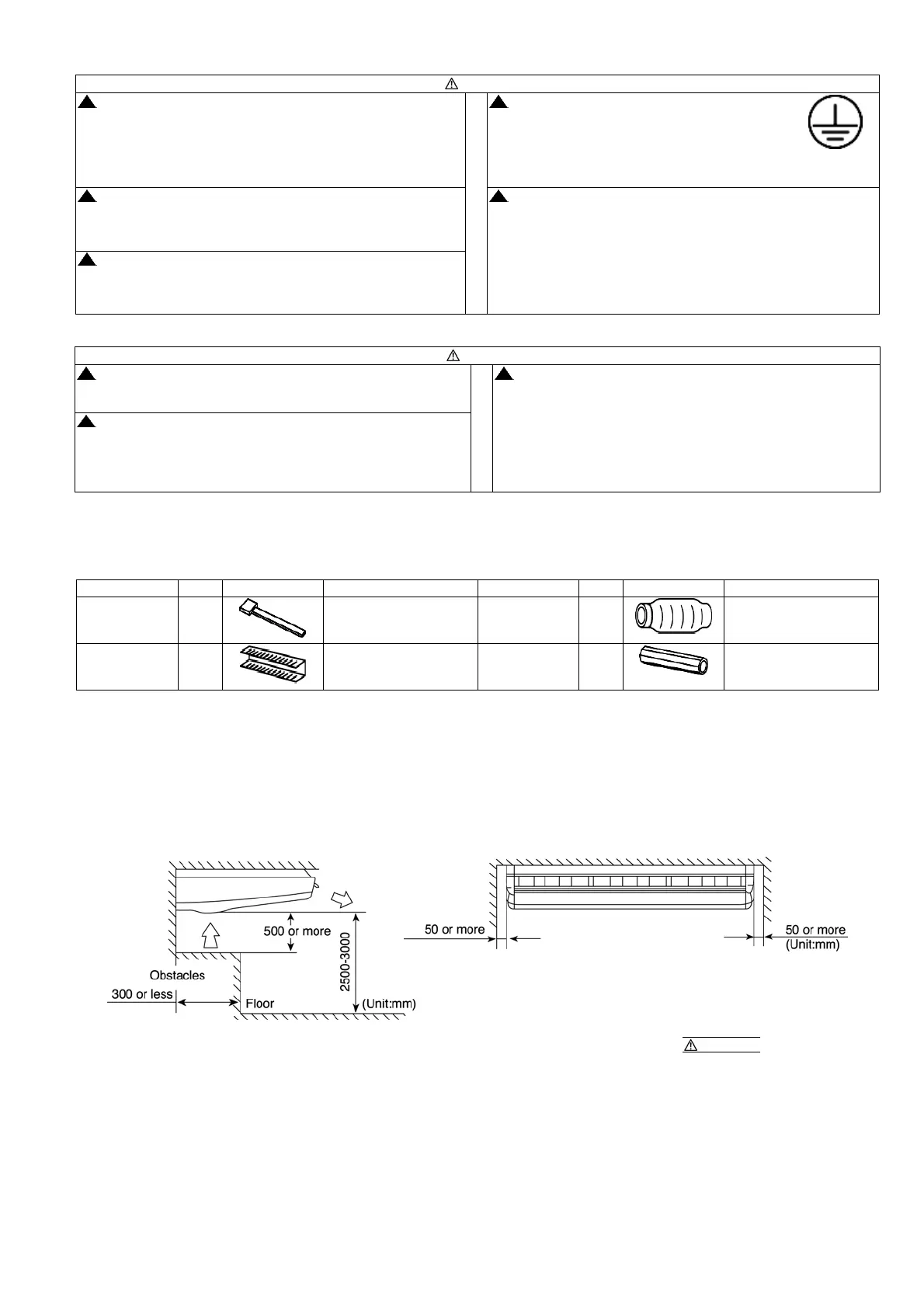 3. The installation position must be able to support a load four times the indoor unit weight. Warnings