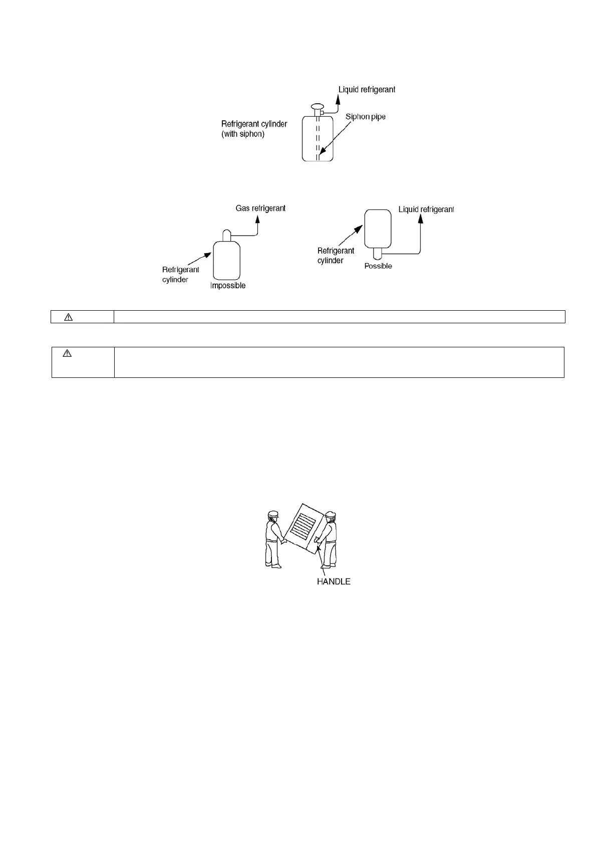 Refrigerant filling must be done in the state of liquid refrigerant. If this is done in gas refrigerant, the balance of refrigerant