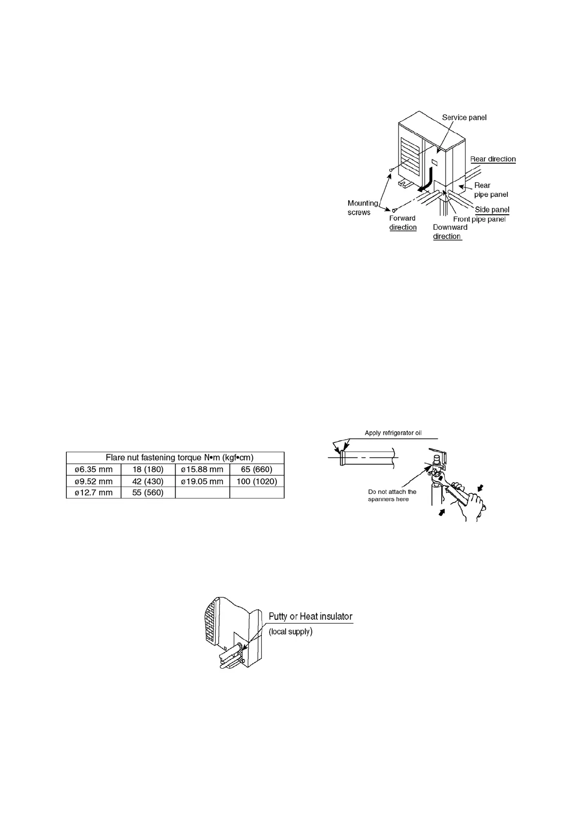 • When tightening the flare nuts, coat the flare (both inside surfaces) with a small amount of refrigerator oil, and screw in about