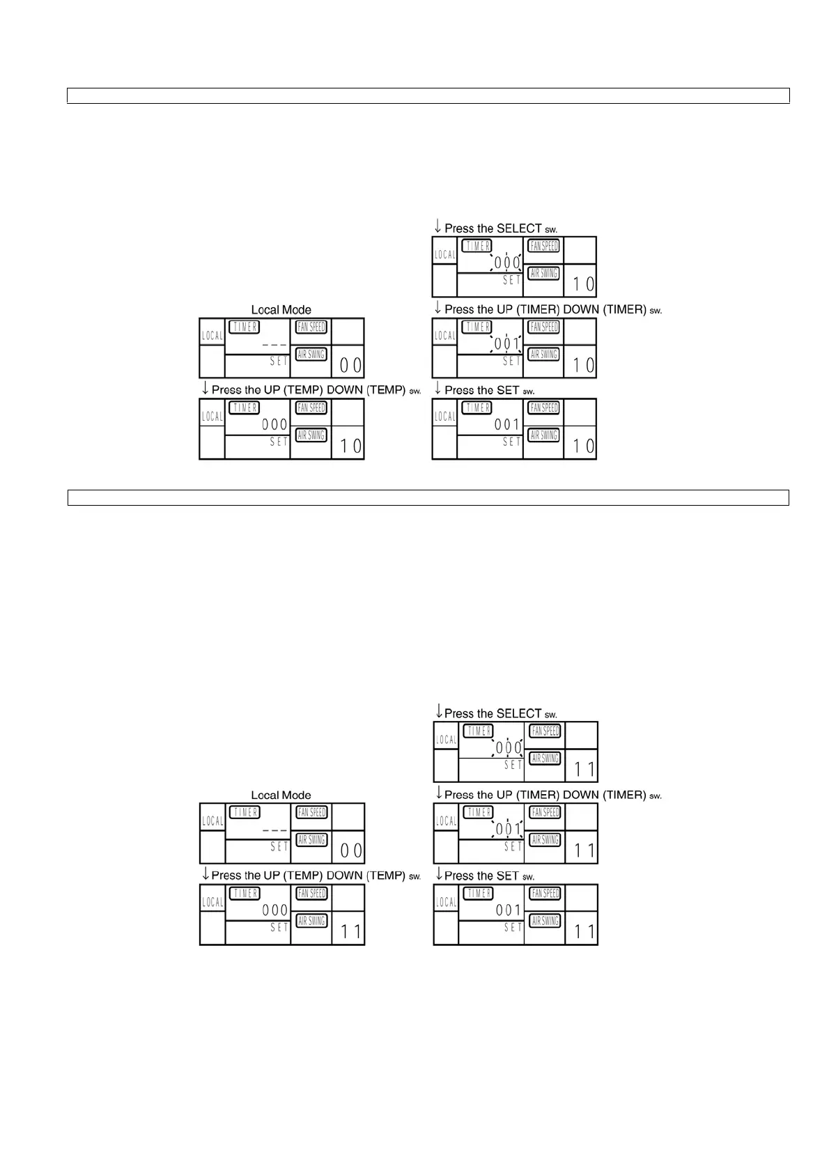 1. When operation is stopped, press for 5 seconds, continue the TEST RUN switch to display “00” (will be LOCAL MODE).