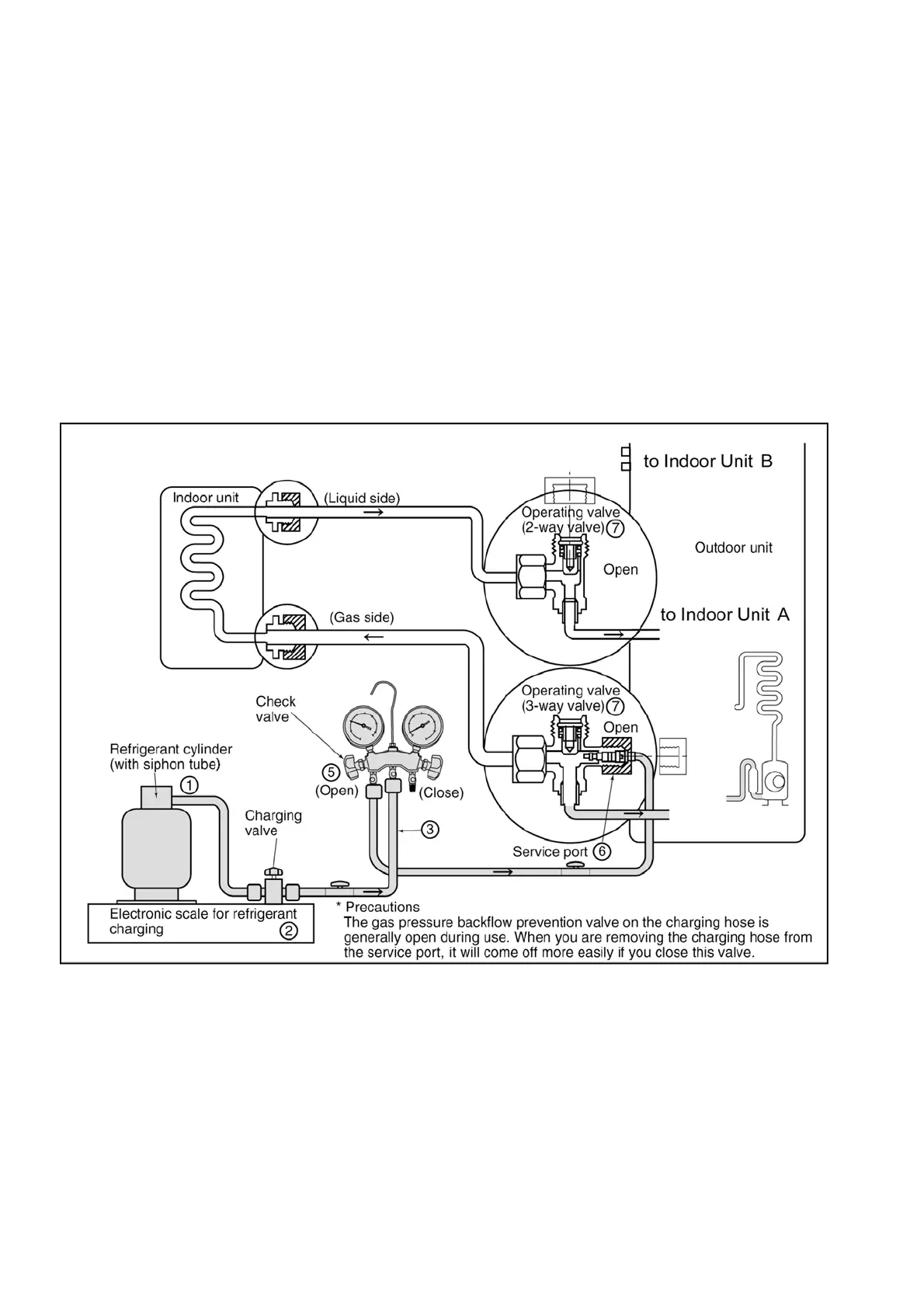 with the liquid refrigerant. (2)(5) (Be sure to read the operating instructions for the electronic scale.)