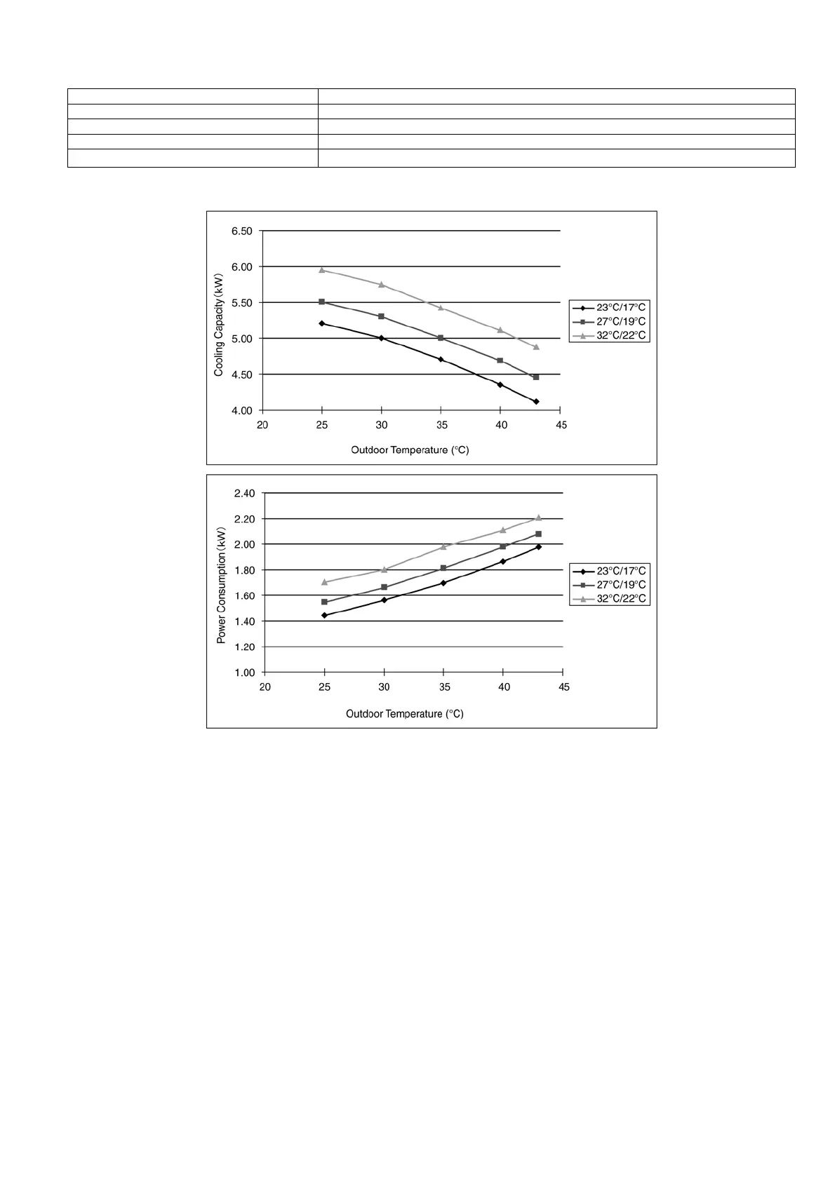 Cooling capacity Indoor temp. 27°C D.B. 19°C W.B.