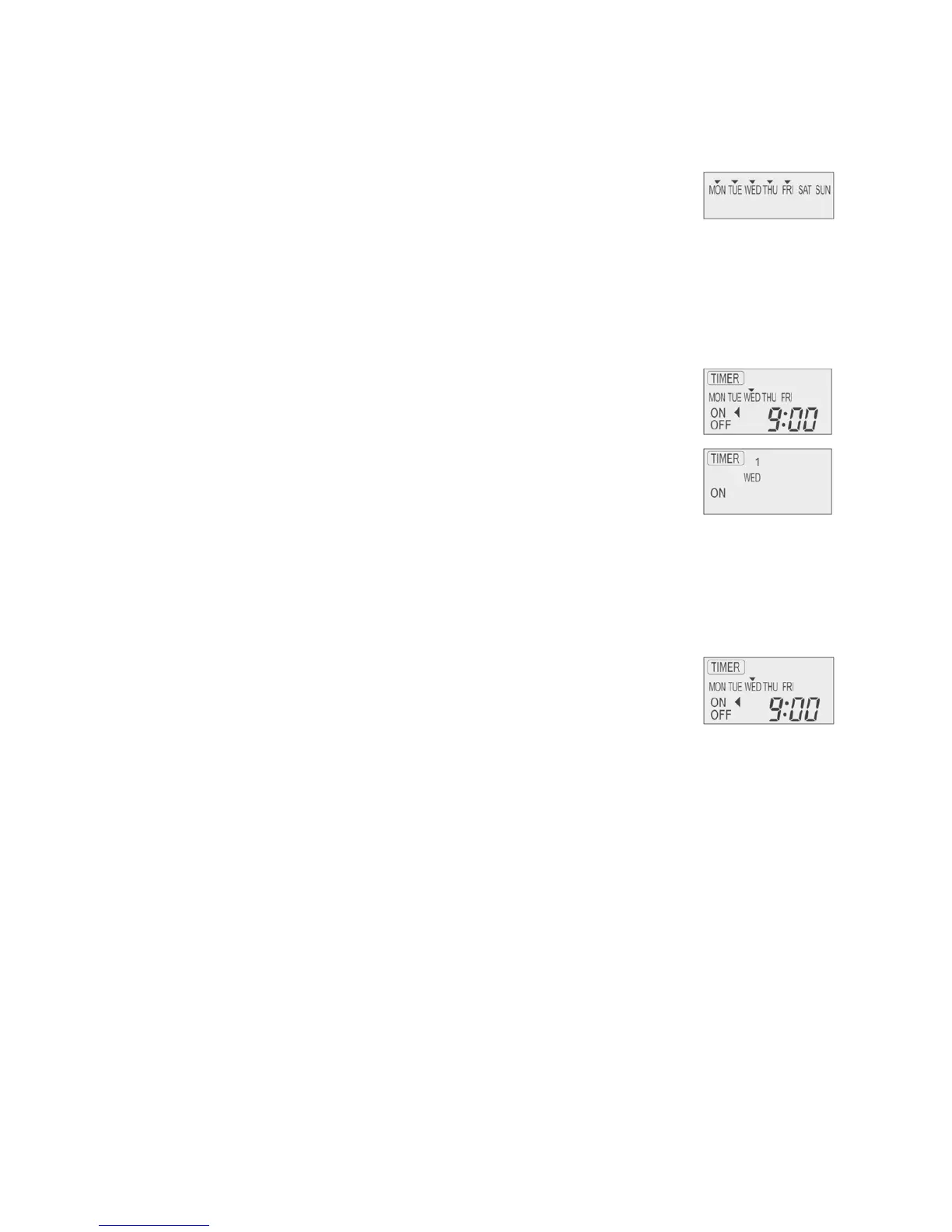 (Display is showing, 9:00 ON - Timer on Wednesday will be activated next because it is nearest the current