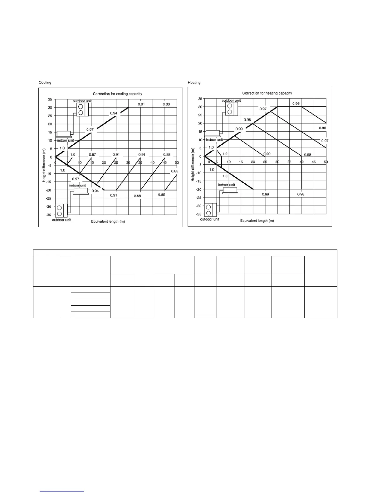 1. Correction of capacities according to the connecting pipe length.