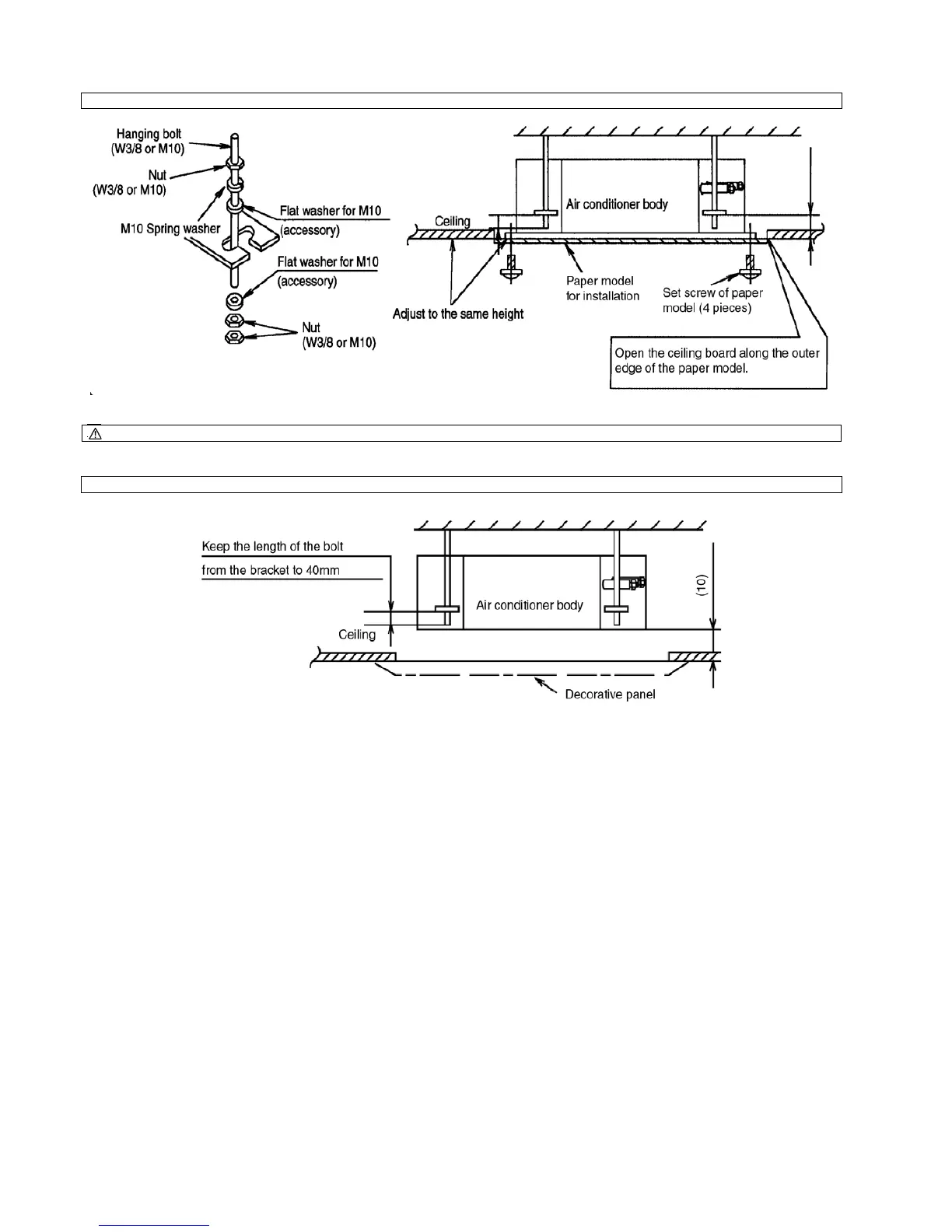 POSITIONS OF AIR CONDITIONER BODY AND CEILING SURFACE