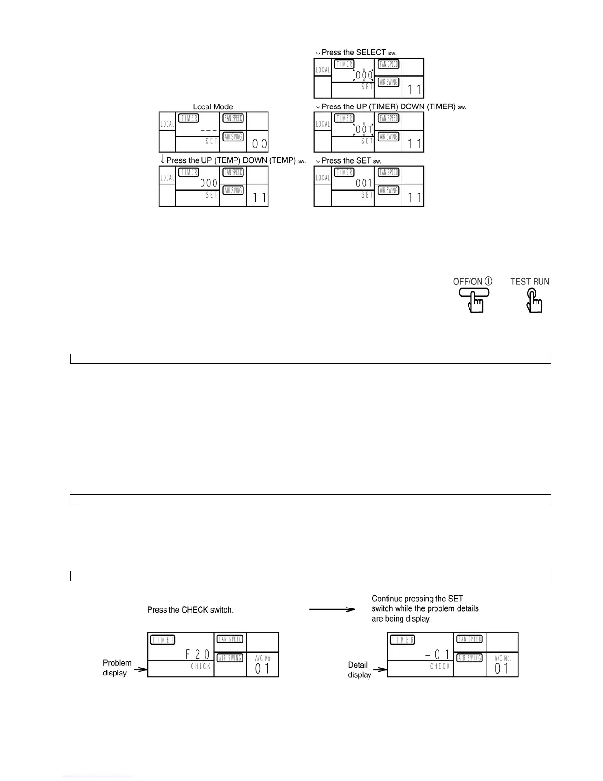 Press the OFF/ON switch or the TEST RUN switch to cancel test operation.
