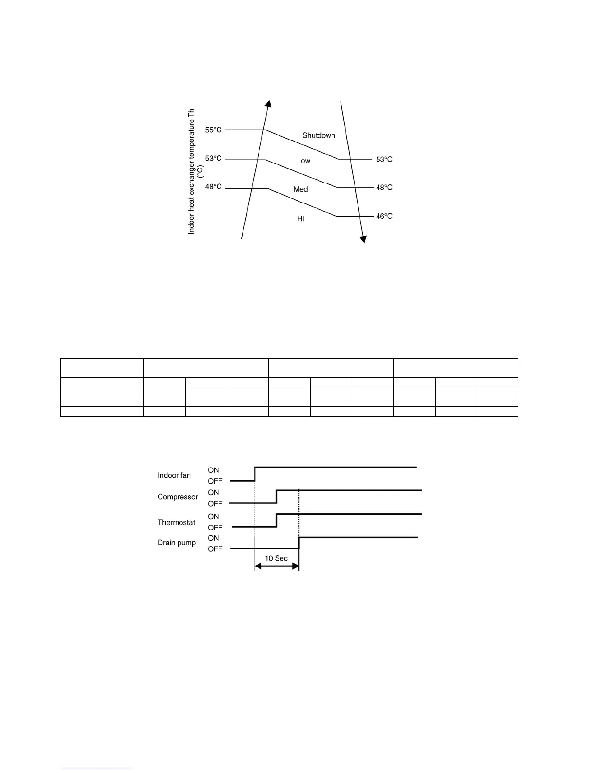 • During Cooling, Soft Dry or Deice operation, drain pump operates by following the table below.