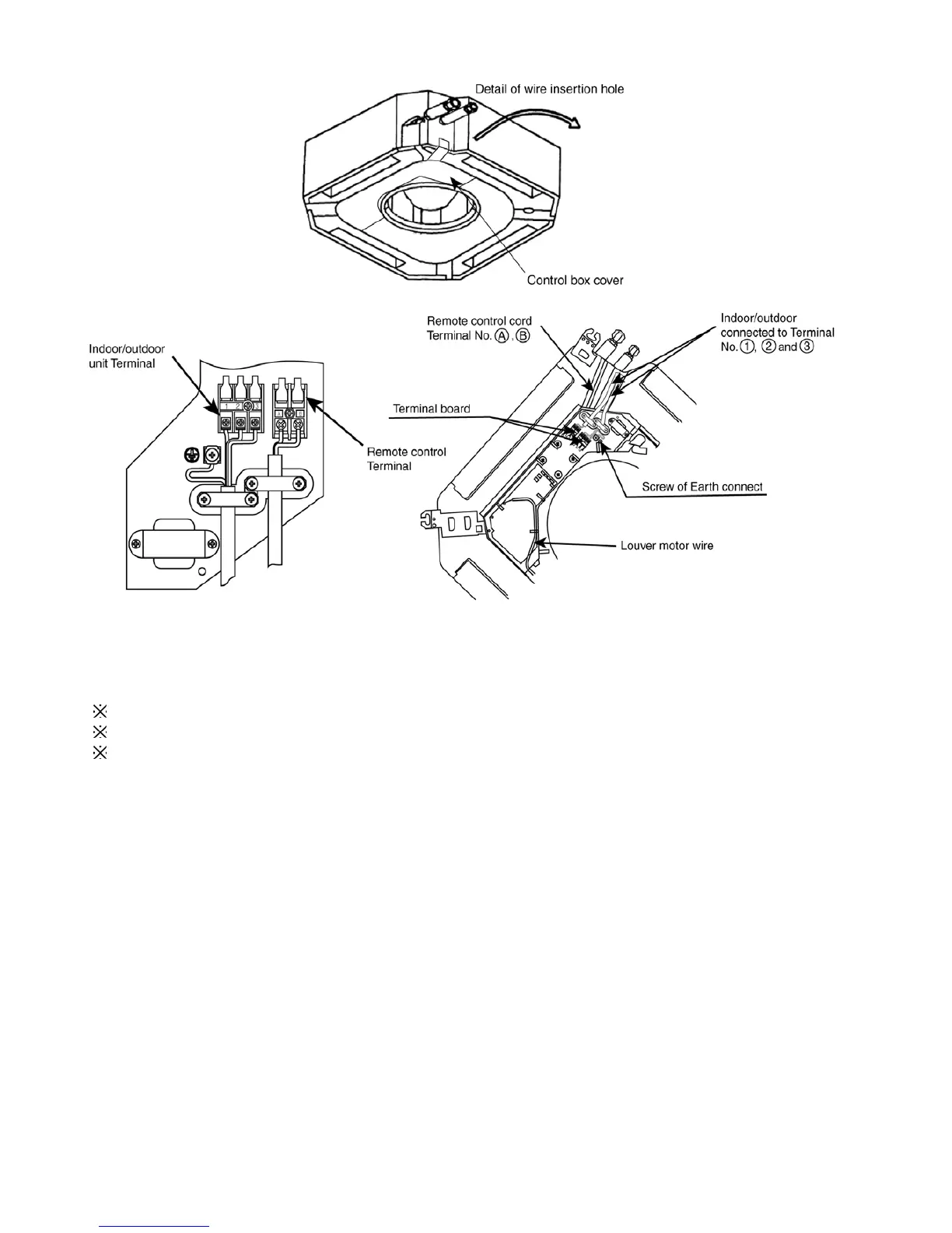 Earth lead wire shall be longer than other lead wires as shown in the figure for the electrical safety in case of the slipping out of the