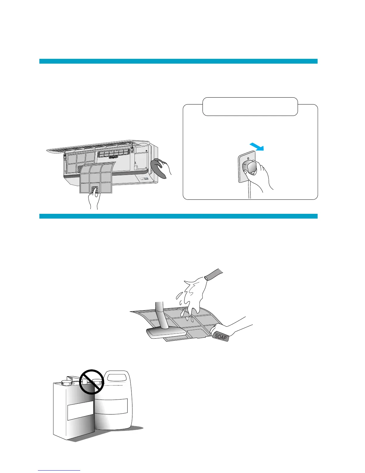 • Do not clean using benzene, thinner, scouring powder or cloths