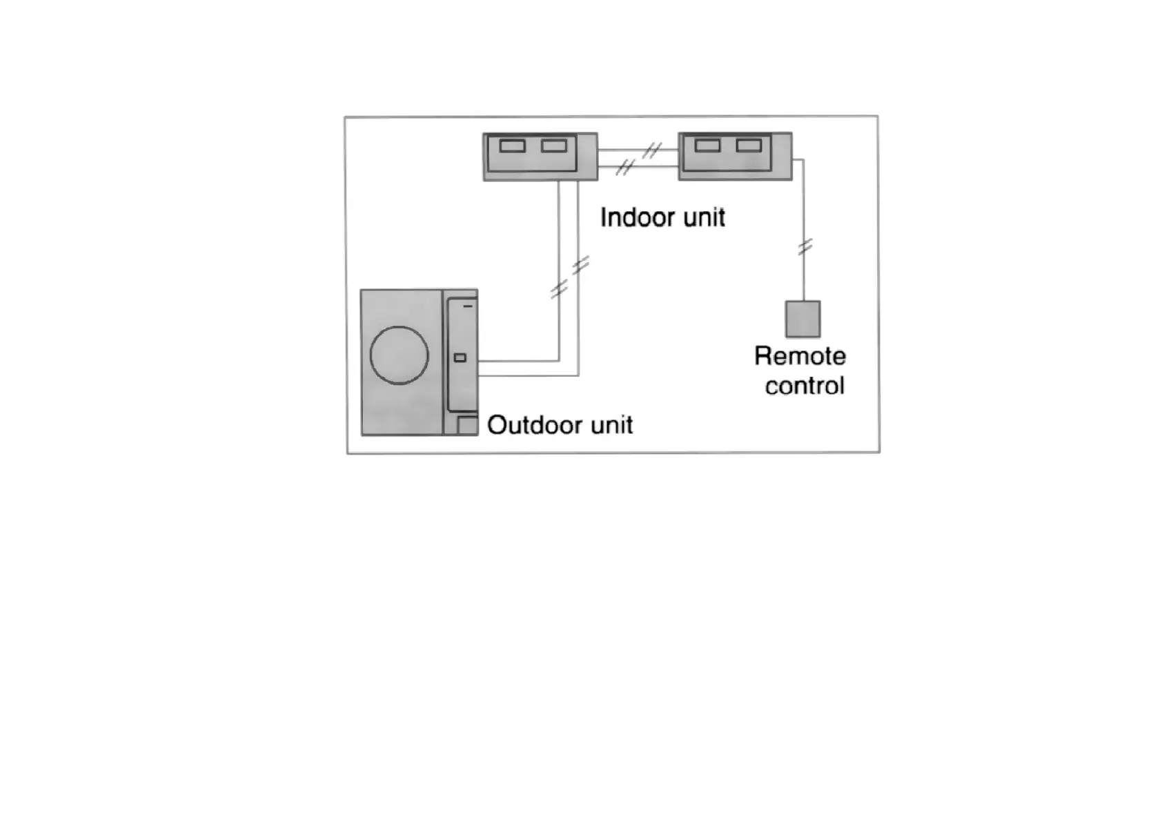 The power supply can be connected to (1) just the outdoor units, or (2) to both indoor and outdoor units.
