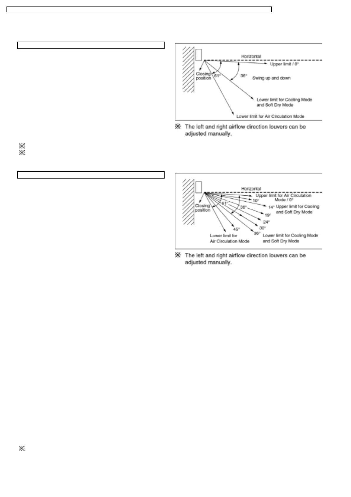 1. There is no swinging while indoor fan motor is stopped during Cooling and Soft Dry operation.