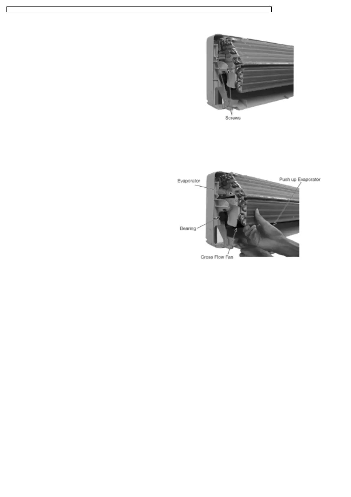 − Push up the Evaporator and pull out the Cross Flow Fan