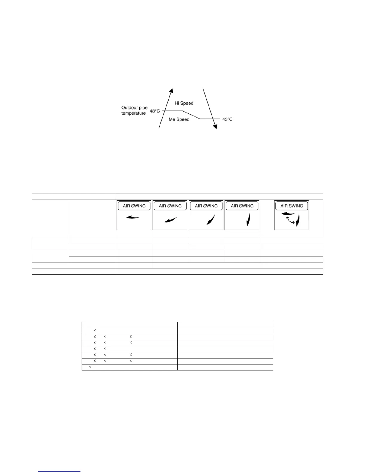 • During operation, stopping, thermostat off condition, louver angle is shown in the table below.