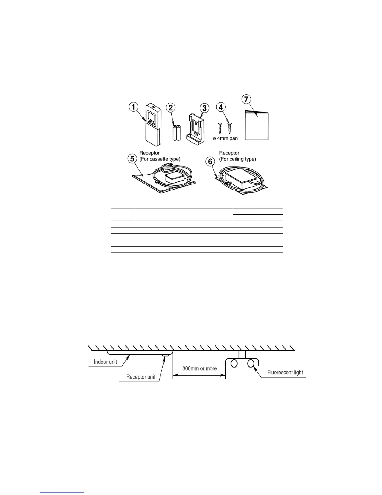 (If using an inverter-type fluorescent light, keep the receptor unit at least 1m away from the light, otherwise remote control oper-