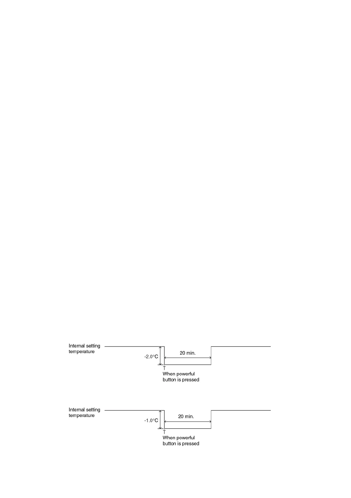 When the powerful mode is selected, the internal setting temperature will shift to achieve the setting temperature quickly.