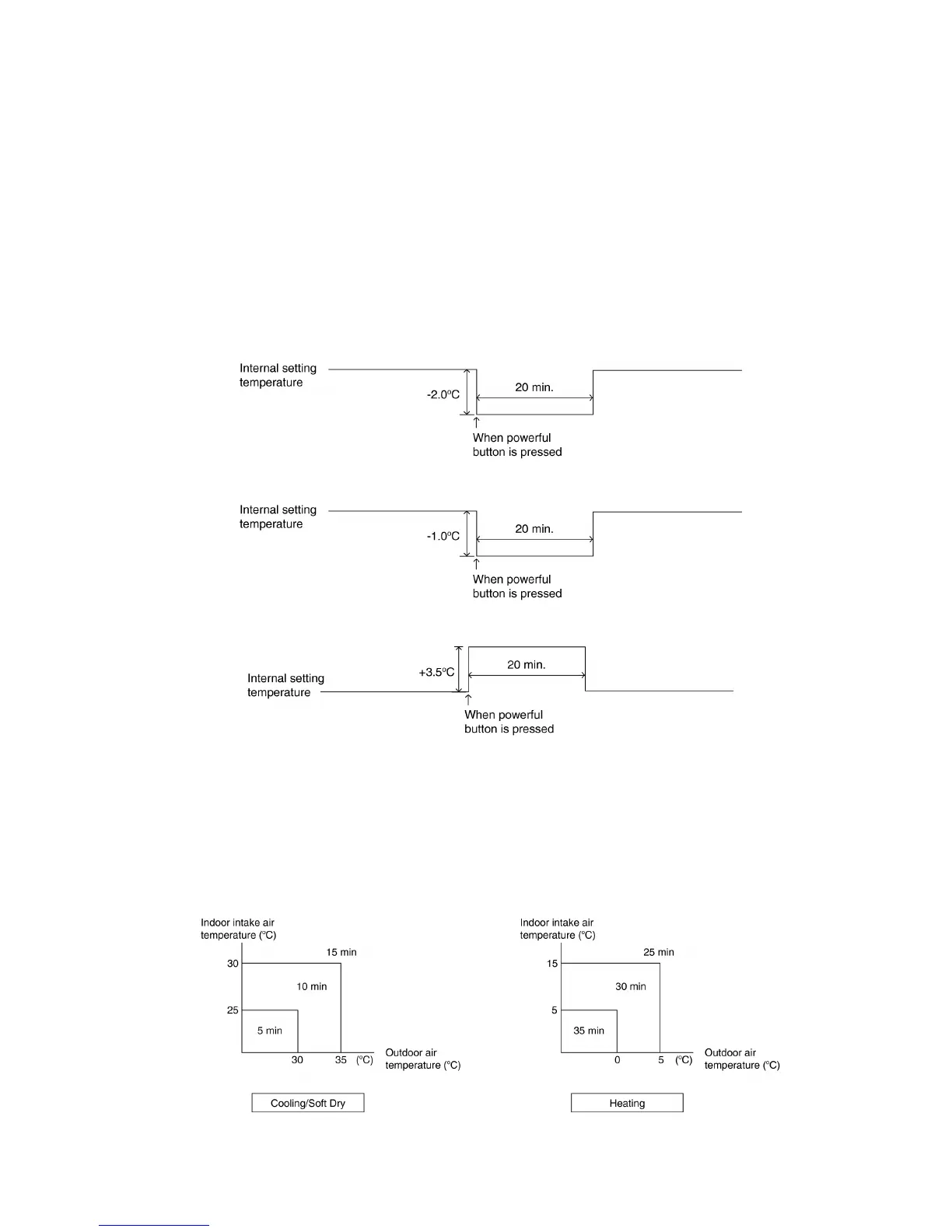 When the powerful mode is selected, the internal setting temperature will shift to achieve the setting temperature quickly.