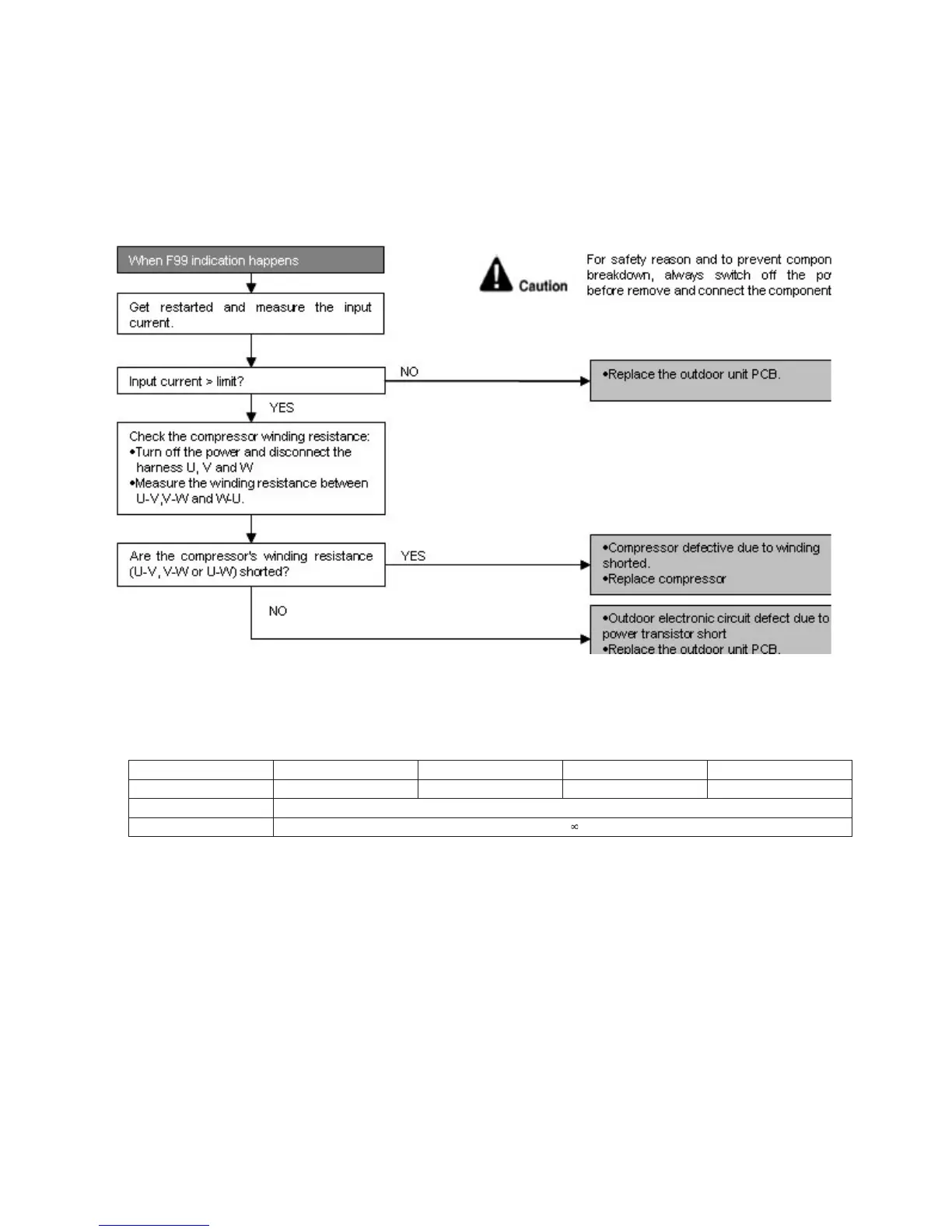 • For the UVW, make measurement at the Faston terminal on the board