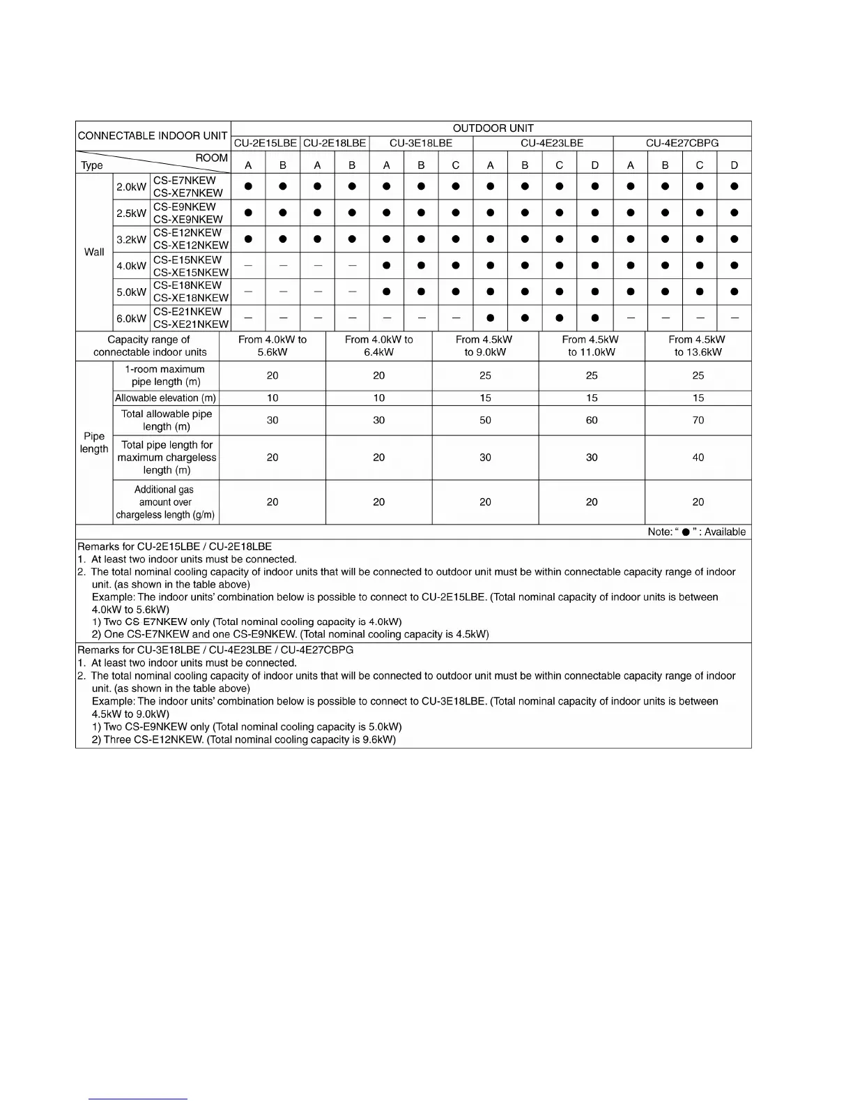 o A single outdoor unit enables air conditioning of up to four separate rooms for CU-4E23LBE, CU-4E27CBPG.