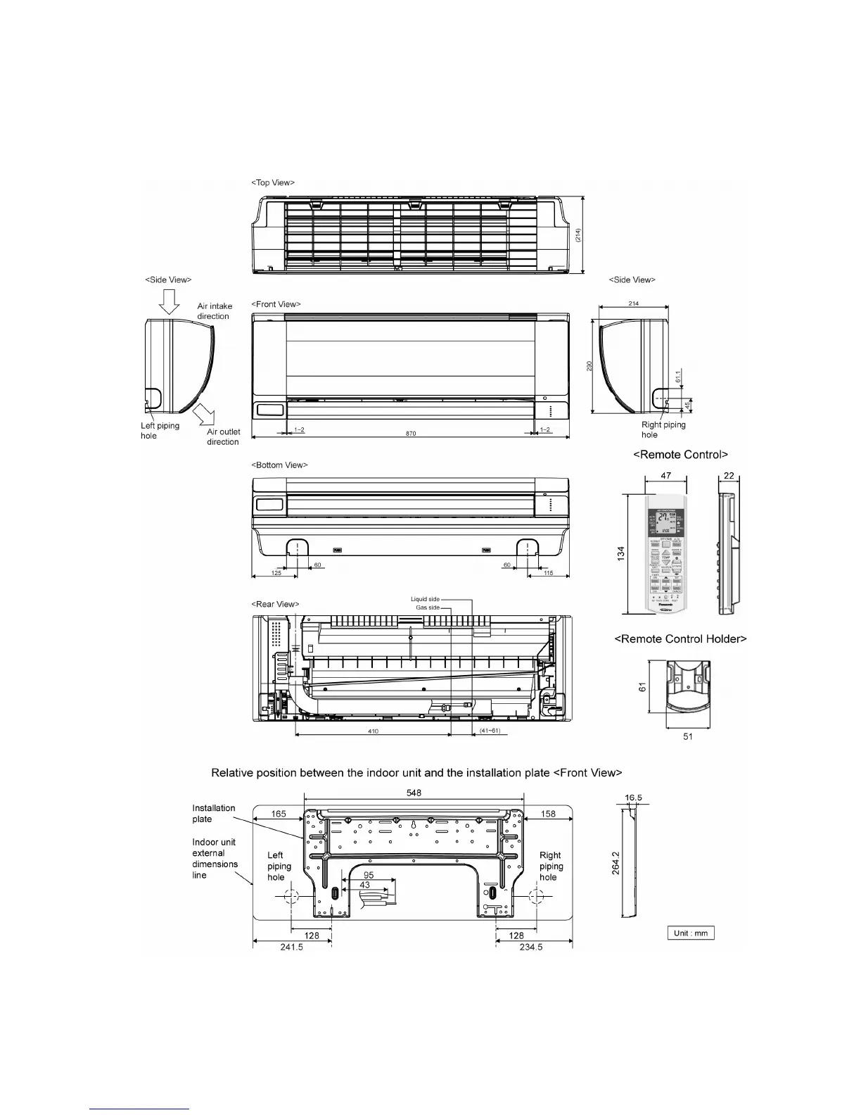 Panasonic CU-E12NKE - 5 Dimensions; Indoor Unit