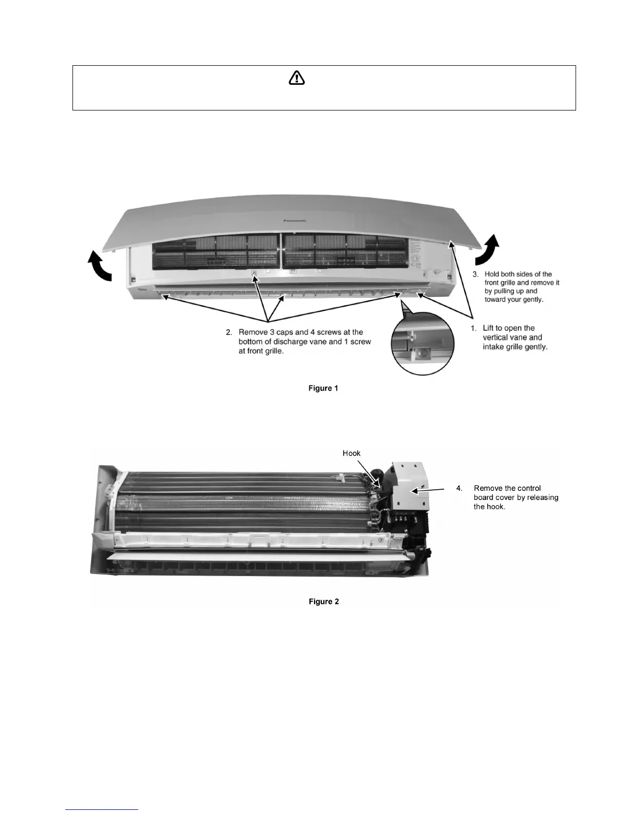 High Voltage is generated in the electrical parts area by the capacitor. Ensure that the capacitor has discharged sufficiently before proceeding with