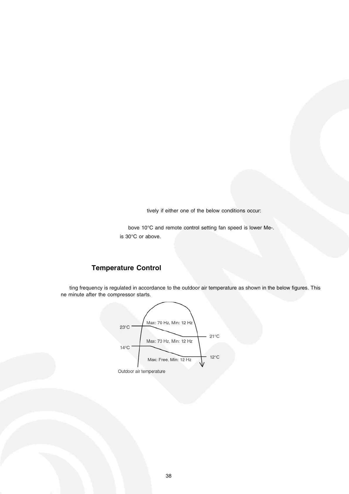 The compressor operating frequency is regulated in accordance to the outdoor air temperature as shown in the below figures. This