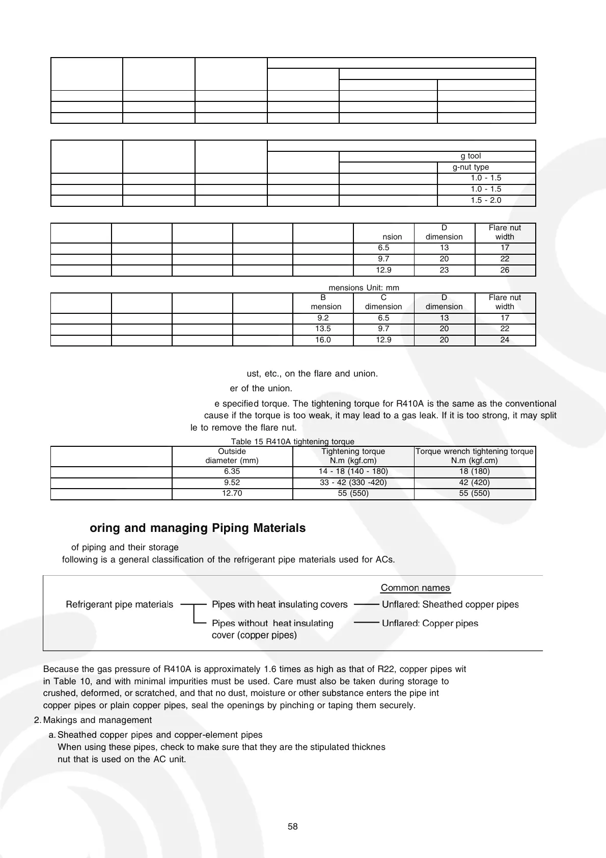 Table 13 R410A flaring and flare nut dimensions Unit: mm