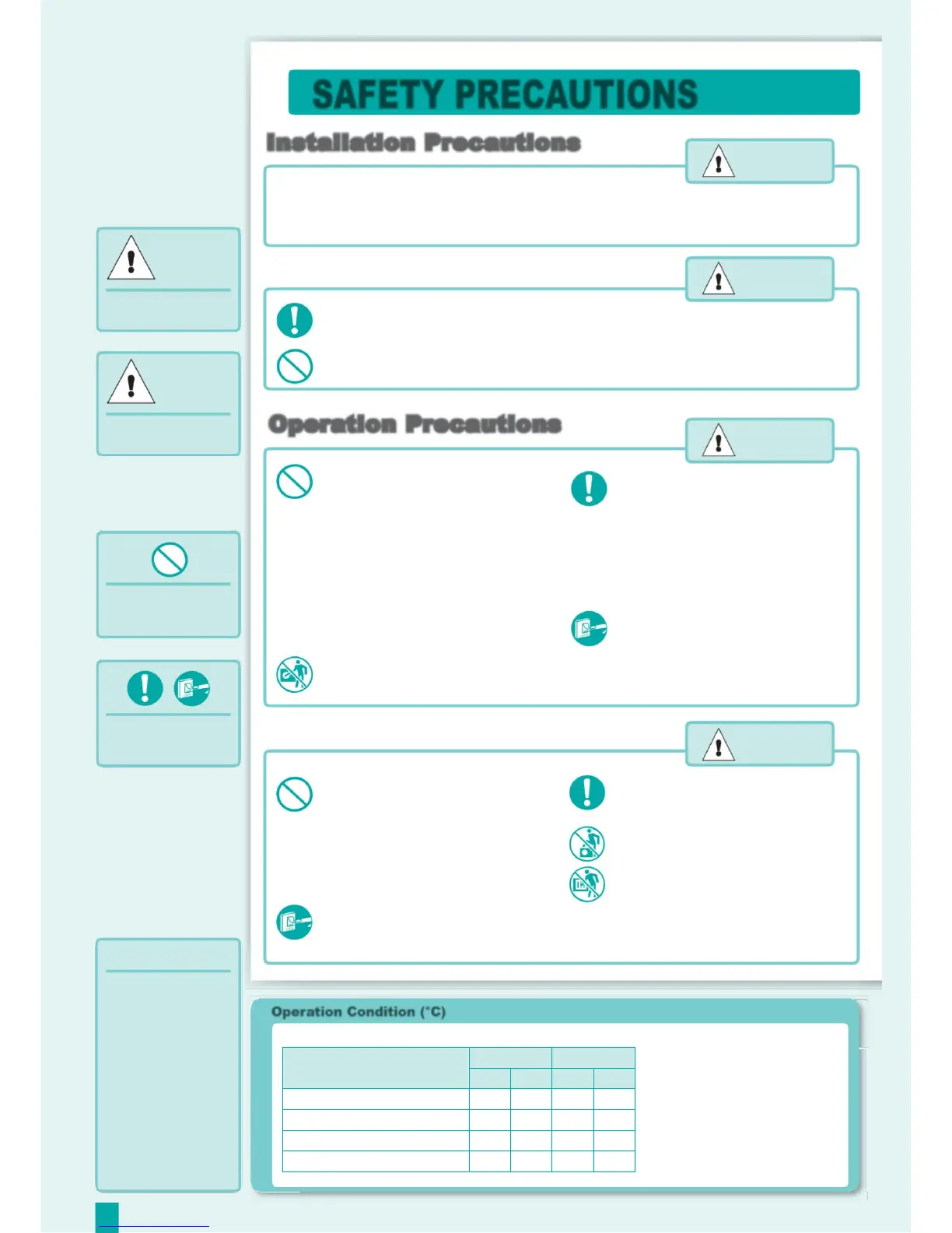 • This equipment must be earthed and installed with ELCB. It may cause electrical shock or fire in case of malfunction.