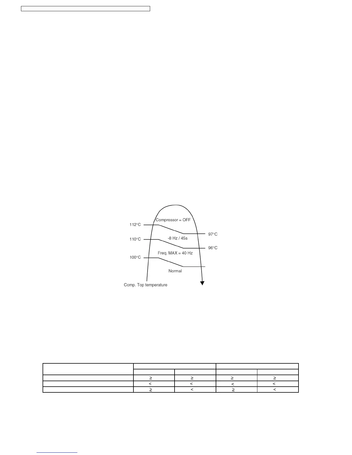 Instructed frequency for compressor operation will be regulated by compressor top temperature. The changes of frequency are as