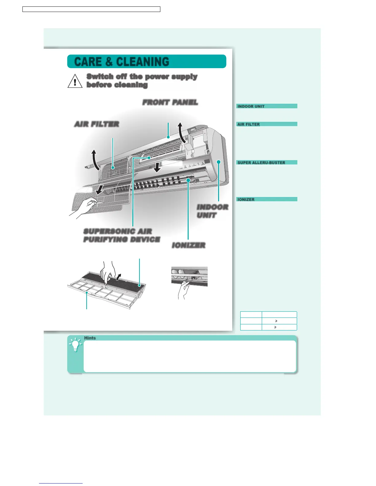 Clean the fi lter regularly as dirty fi lters will cause unpurifi ed air, low cooling or heating capacity, unpleasant smells and higher