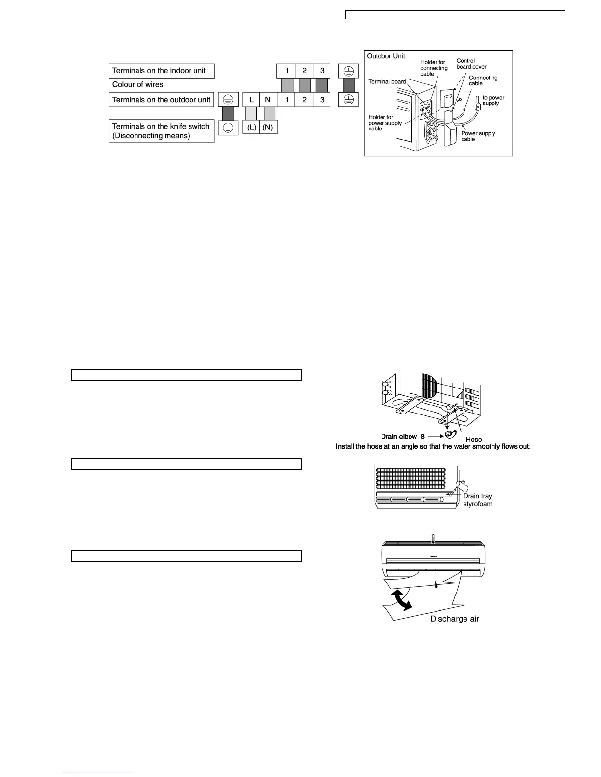 2. If drain hose or connecting piping is in the room (where dew may form), please increase the insulation by using POLY-E FOAM