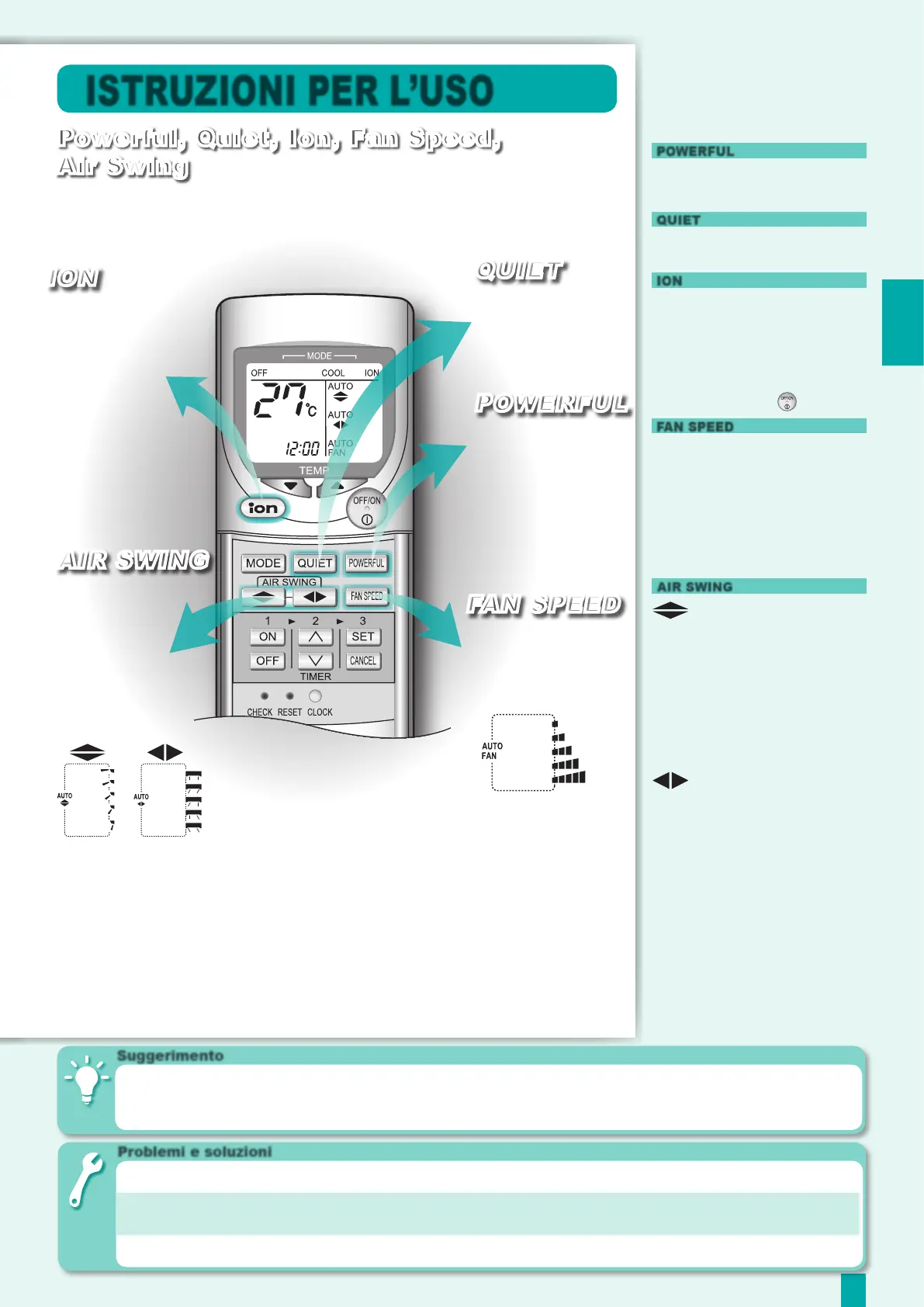 ● Le modalità “POWERFUL”, “QUIET” e “ION” possono essere