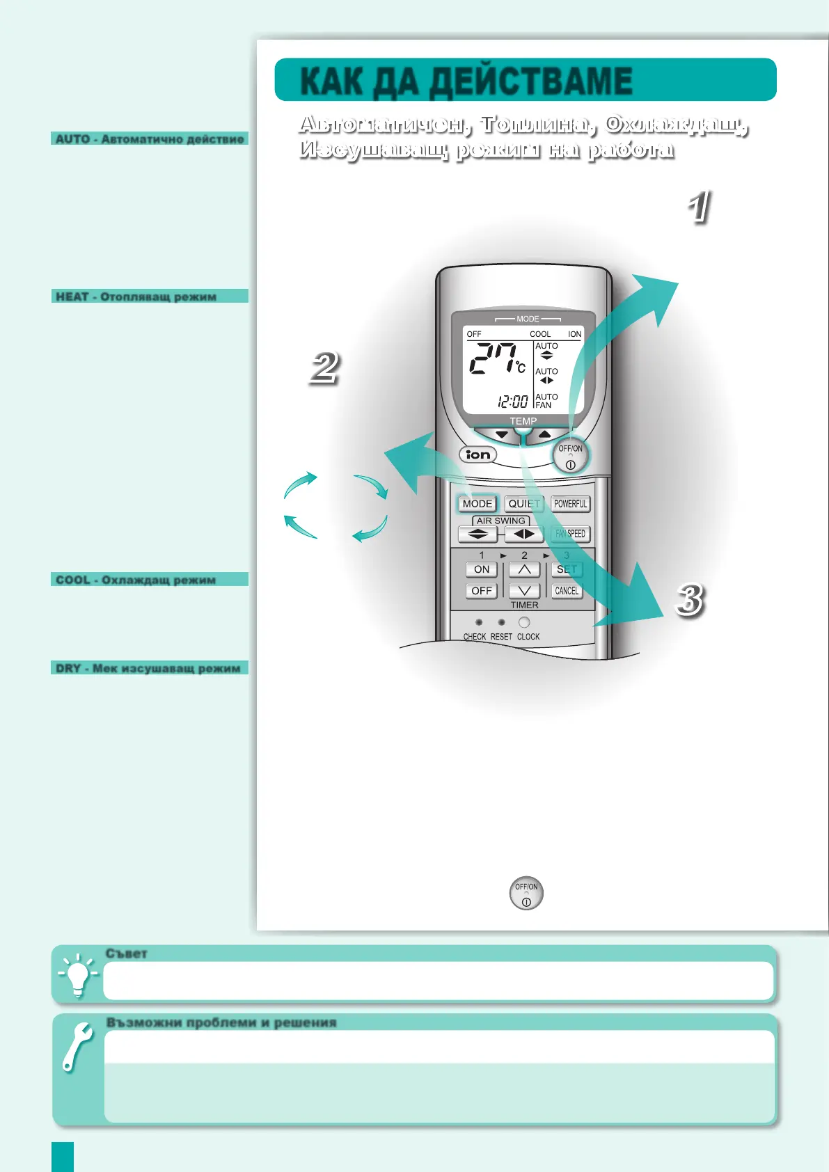 ● Действията “Powerful” (Мощен), “Quiet” (Тих) и “Ion”