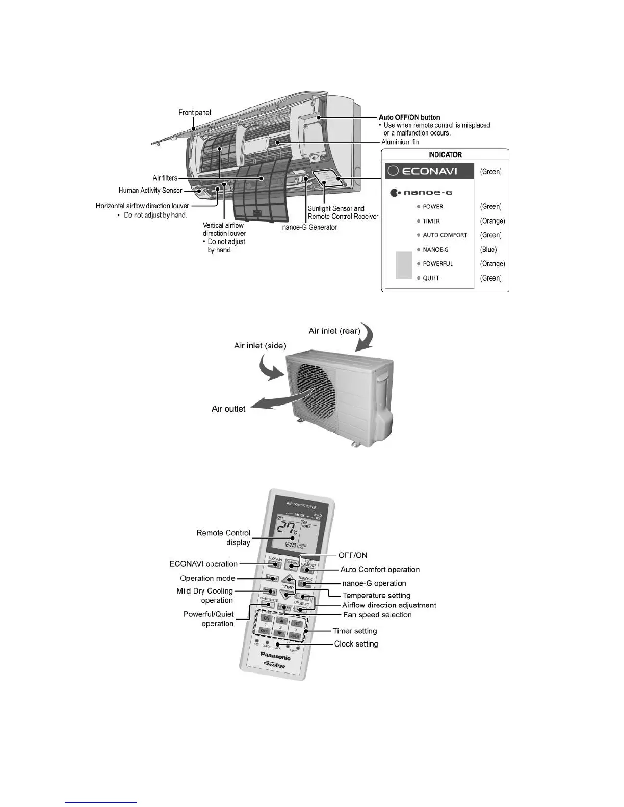 Panasonic CU-E24NKR - 4 Location of Controls and Components; Indoor Unit; Outdoor Unit; Remote Control