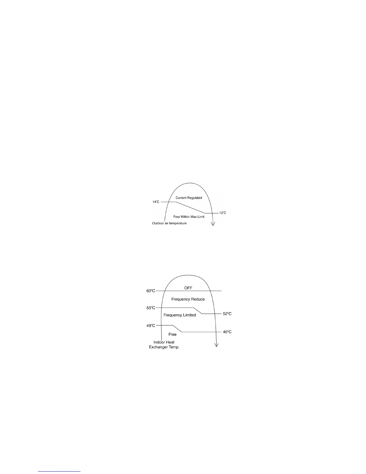 The compressor operating frequency is regulated in accordance to indoor heat exchanger temperature as shown