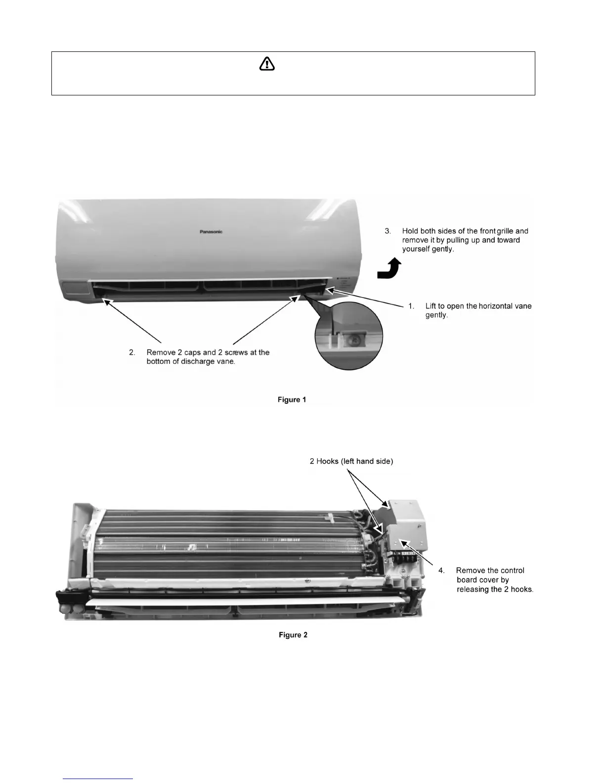High Voltage is generated in the electrical parts area by the capacitor. Ensure that the capacitor has discharged sufficiently before proceeding with